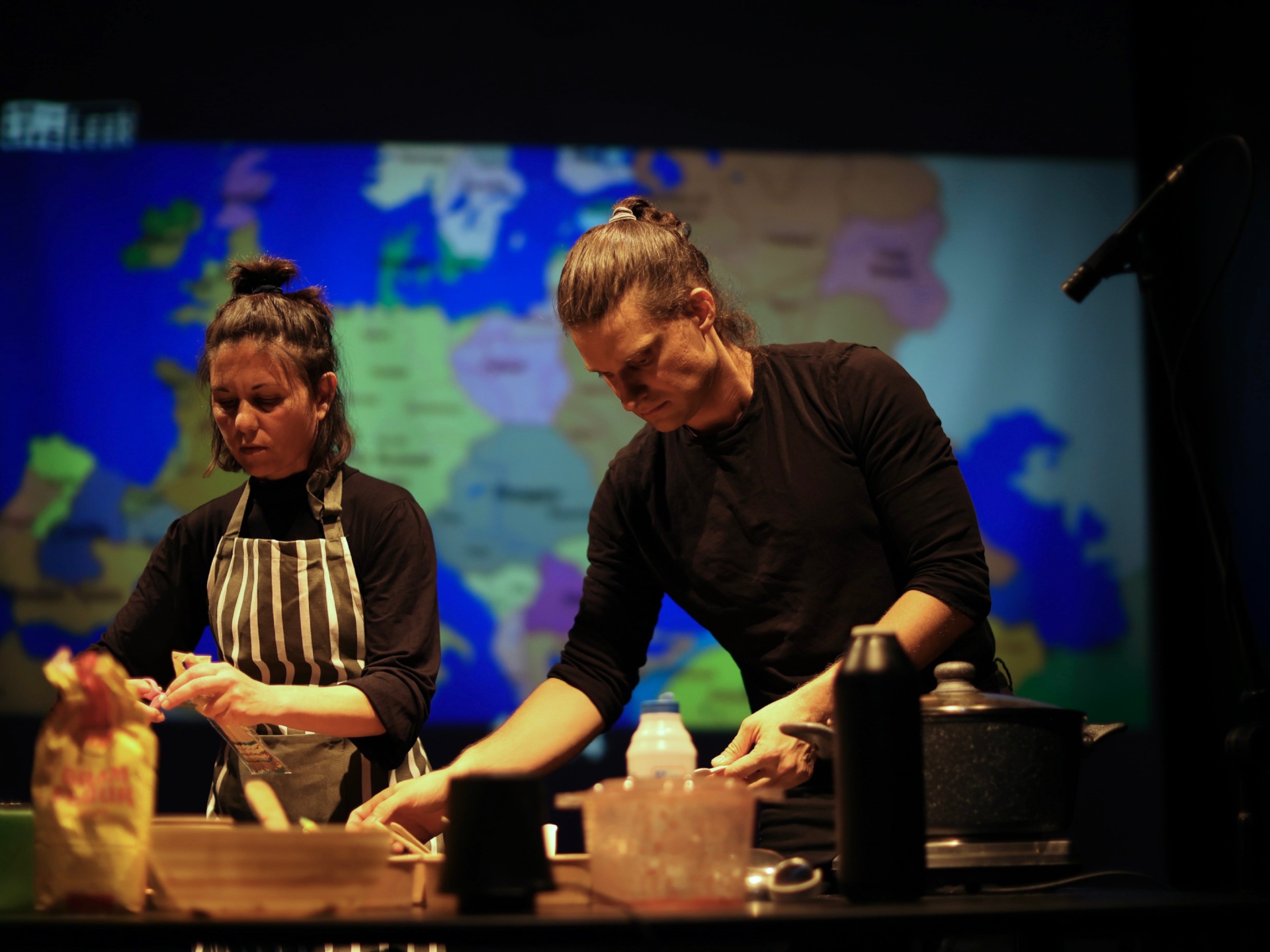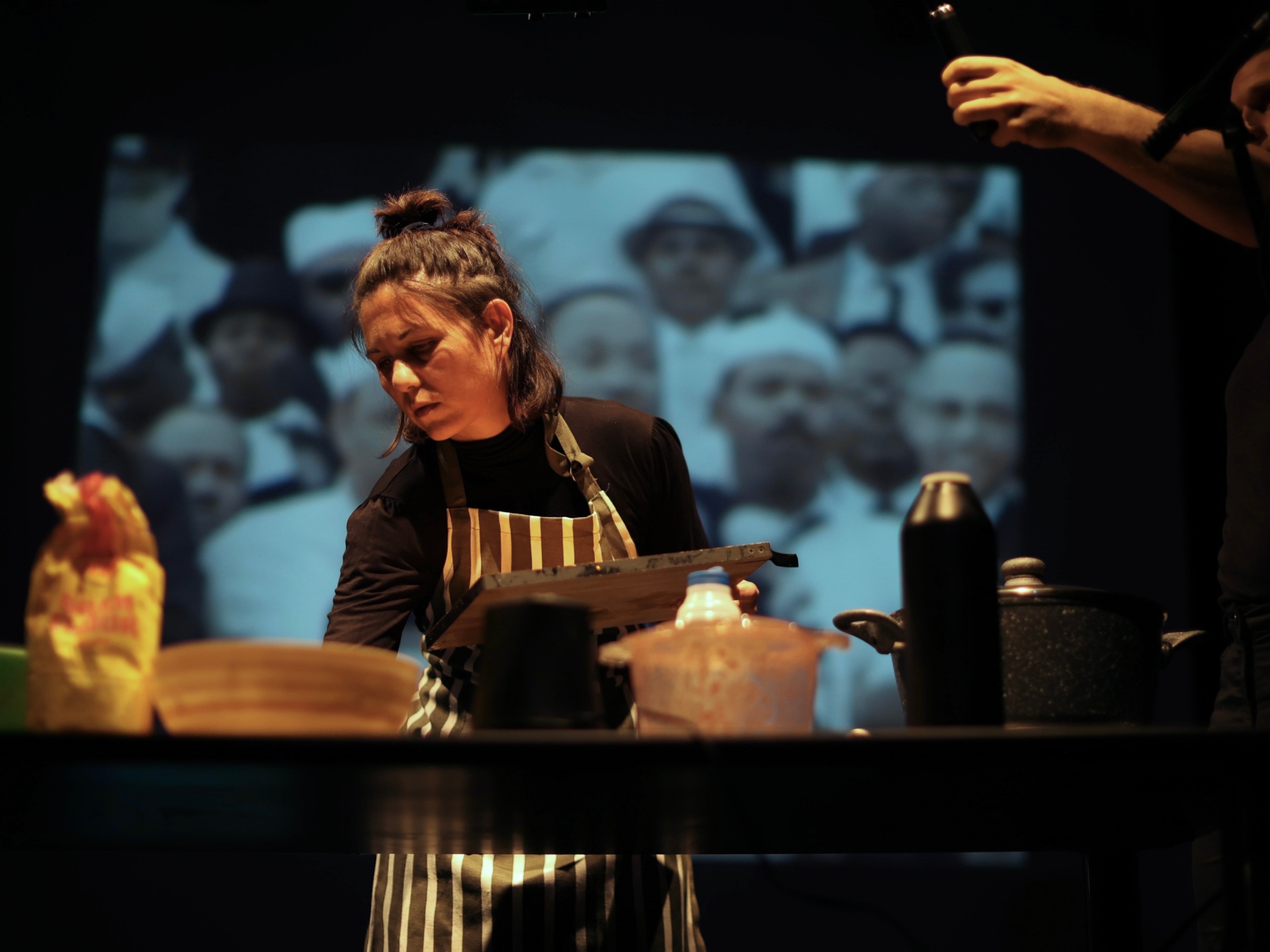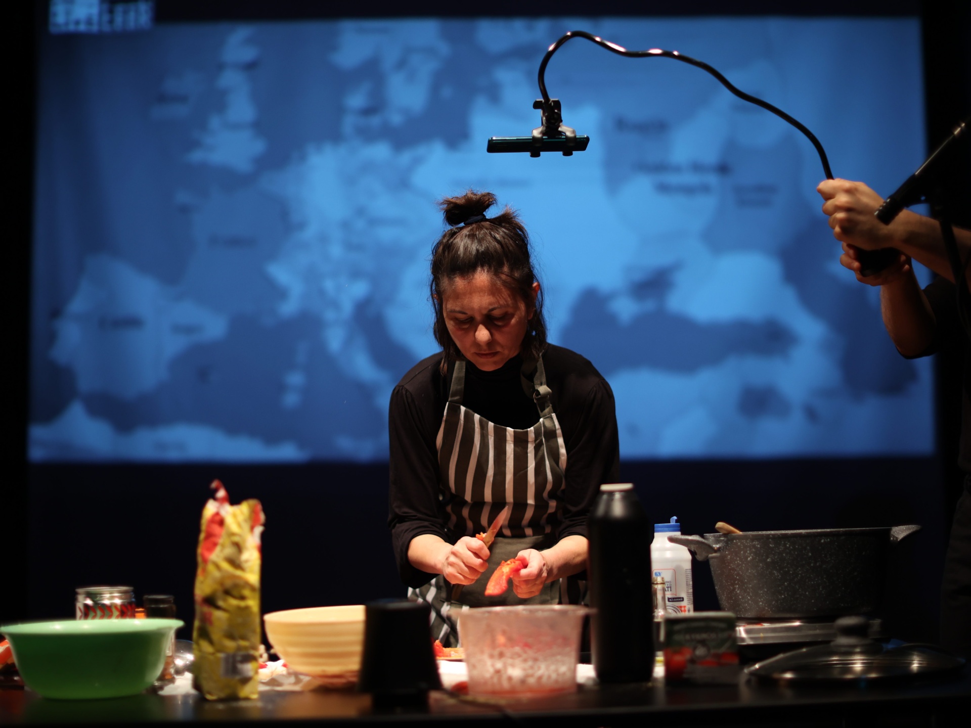 The mixed-media performance The Soup: a contemporary ritual - tribute to the freedom and speech (and beyond) is inspired by the ideas of contemporary philosopher Achille Mbembe as expressed in his book Necropolitics. The hope is that we remember and relive the primordial significance of what it means to be human by sharing such fundamental experiences as food, as well as through the—bitter, perhaps?—realisation that history repeats itself. The action moves between the everyday/mundane and the philosophical/political, raising questions about the current condition of the world.